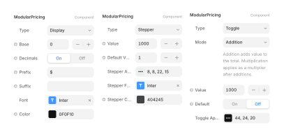 Add additional instances for each pricing option, setting the type to Toggle, Checkbox, or Stepper as needed, and assign each a value.